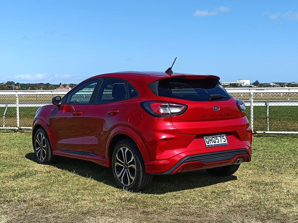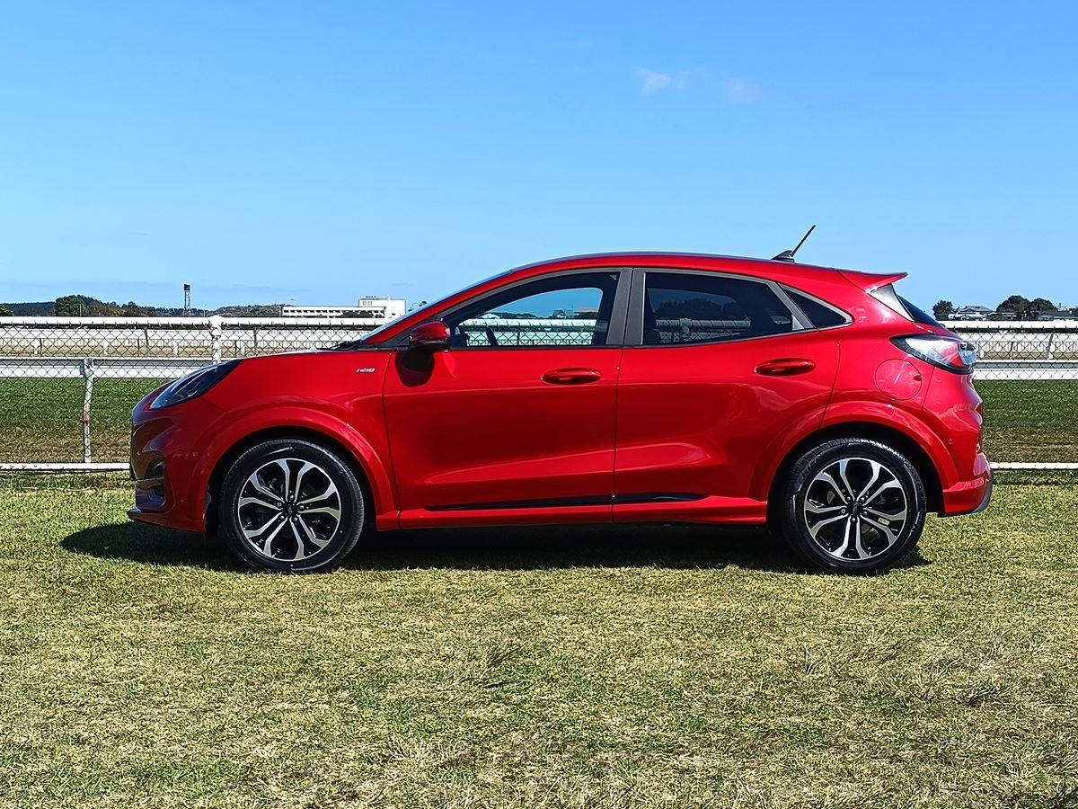 Puma MHEV has the powerful responsive performance, with optimized fuel efficiency using Fords EcoBoost Hybrid 48-volt technology, three cylinder 1.0 litre EcoBoost petrol engine to deliver up to 92KW and 210NM of torque. with 17-inch black machined Alloys, ST-Line matte black grille, sports suspension, ST-Line sports seats with red stitching and Flat-bottom ST-Line leather steering wheel.